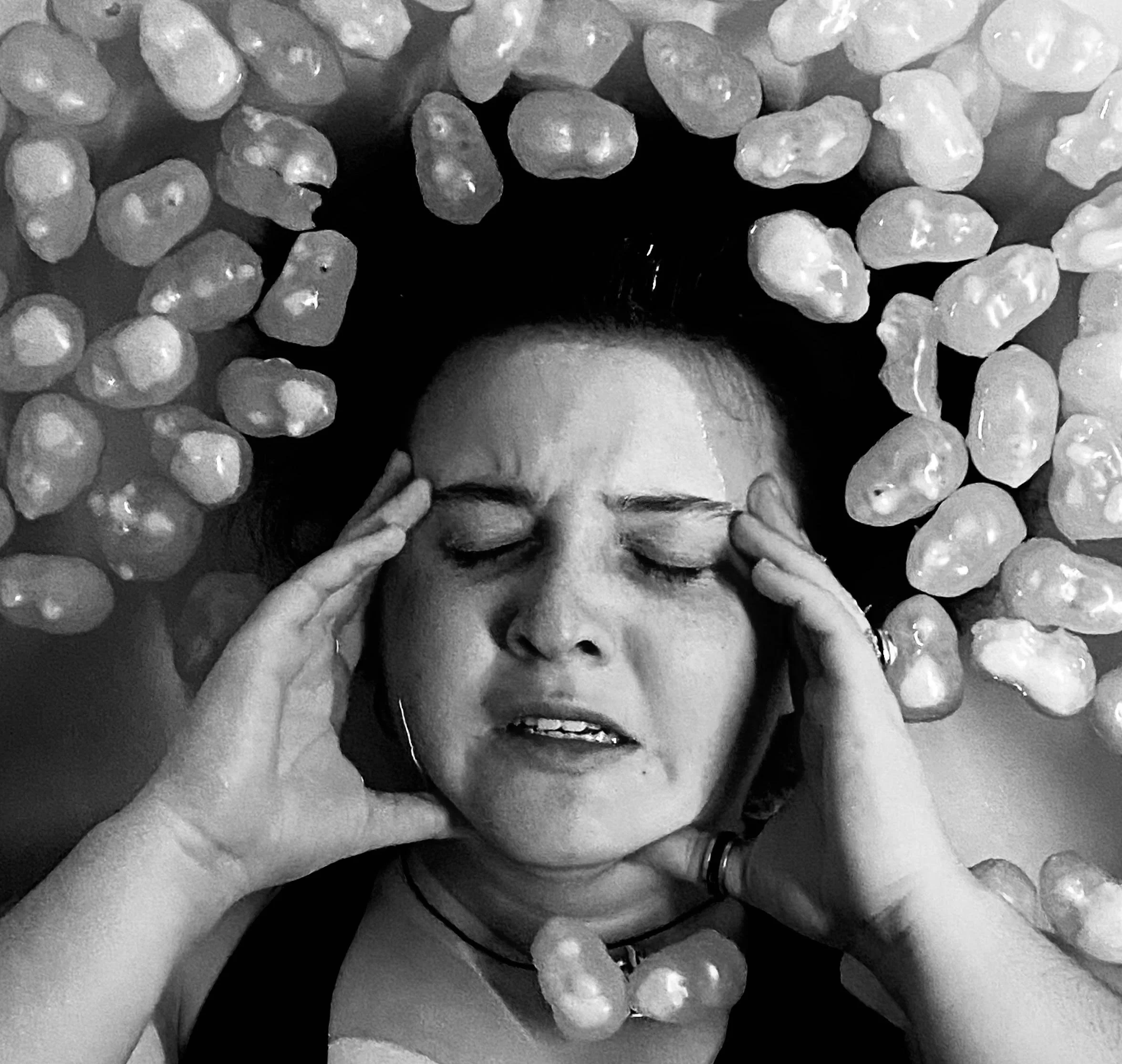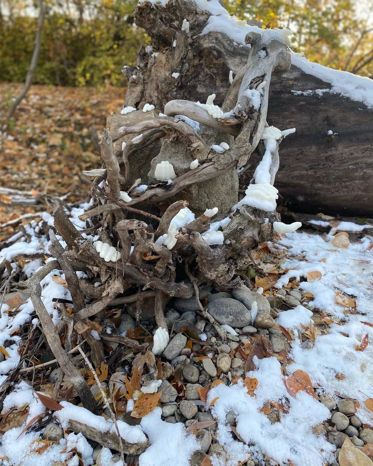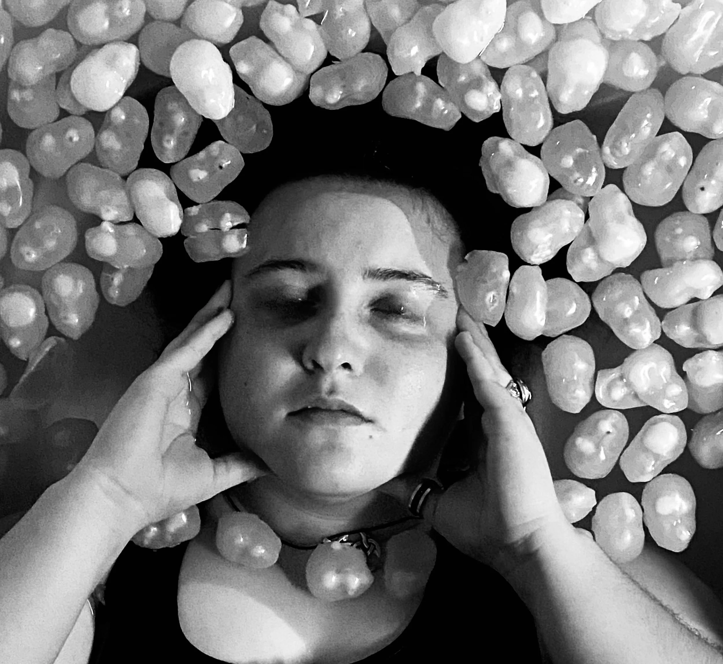 “Heavy Handed.” 2023, Beeswax, Mannequin Hand, Rope, Wire, Fishing Hook.