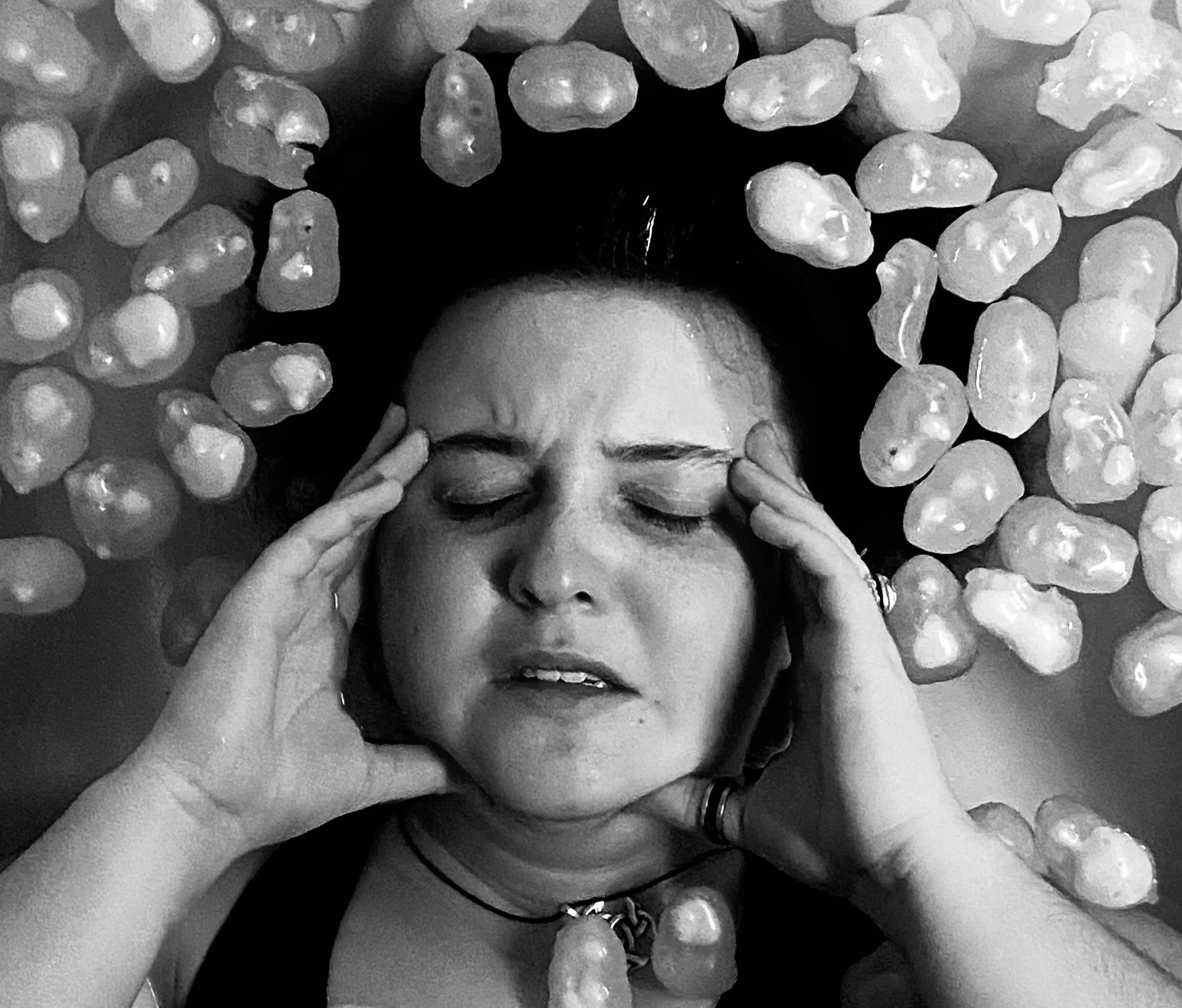 “Visceral Eye.” 2023, Copper, Powder coat, Citrine