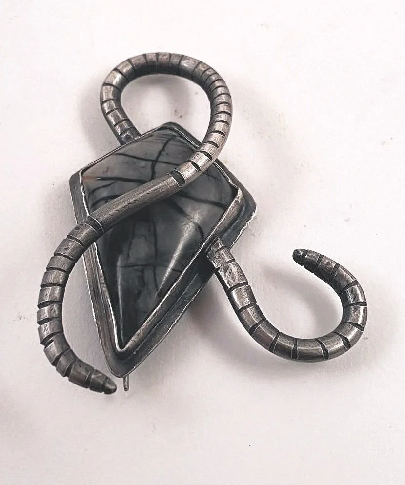 “Worm Brooch.” 2023, Silver, Steel, Picasso Jasper