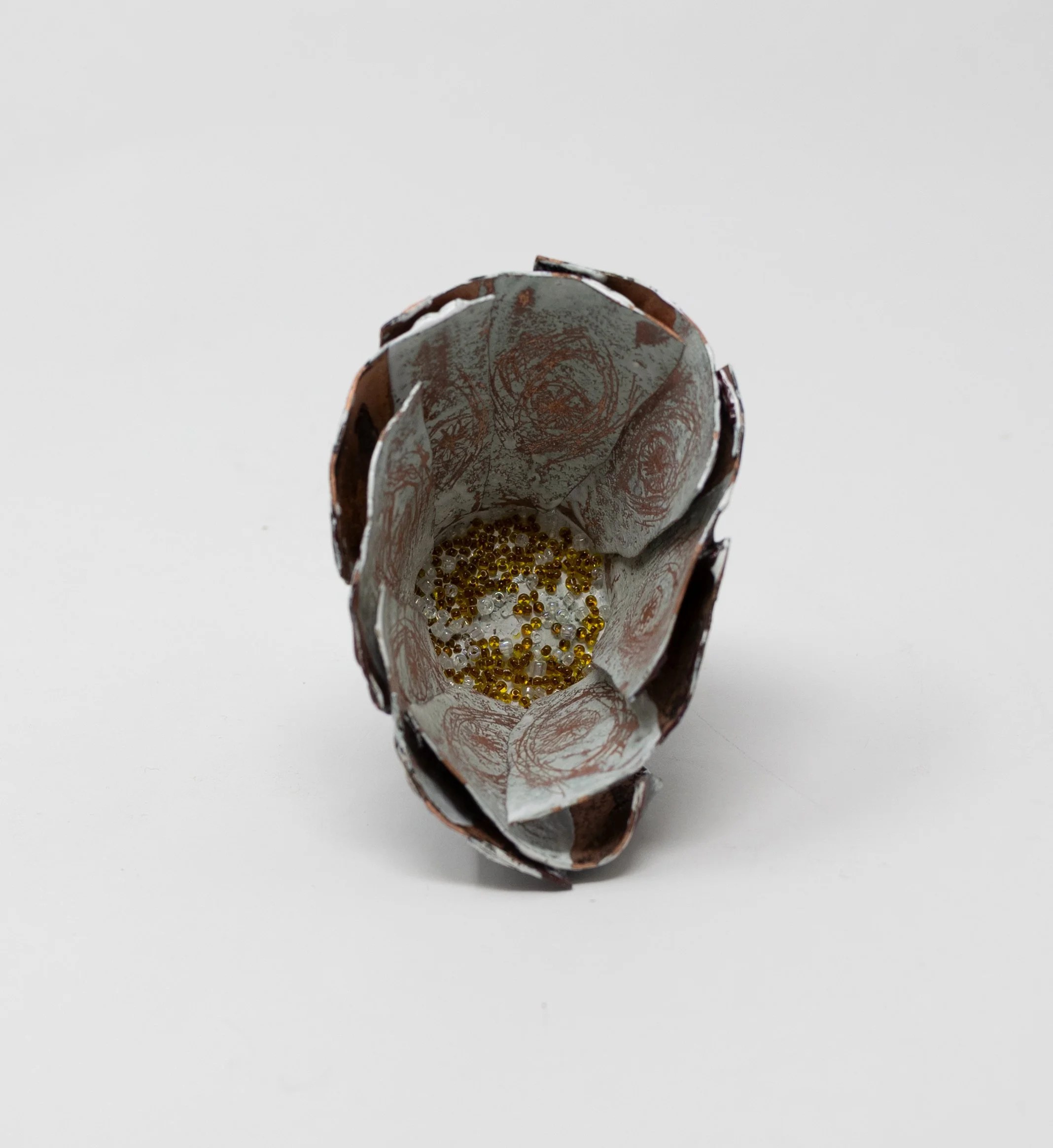 “Eye Bowl 3.” 2025, Copper, Enamel, Seed Beads